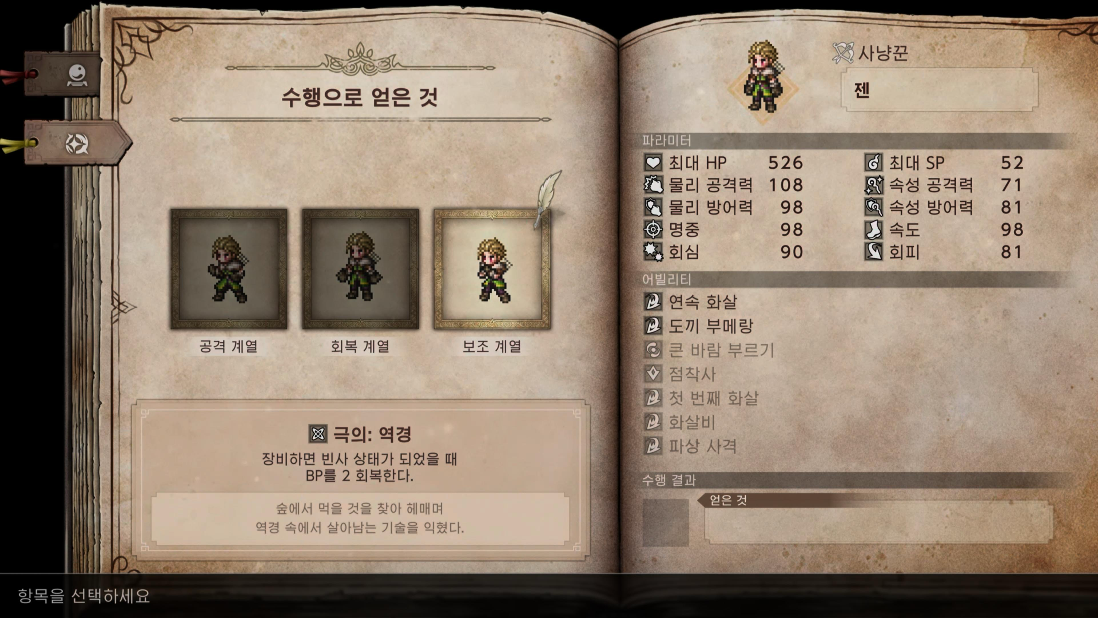 직업은 게임을 진행하면서 해금할 수 있으며, 열심히 JP를 모으면 모든 직업을 얻을 수 있습니다.