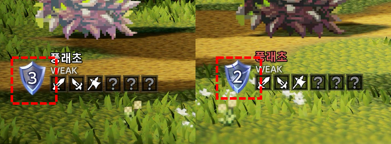 그리고 모든 적은 왼쪽에 실드 포인트가 숫자로 표시되어 있습니다.