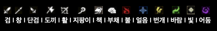 만약 단검과 지팡이가 지팡이가 약점인데, 2개가 붙어 있다면 '도끼, 활'은 약점이 아니라는 의미이죠.