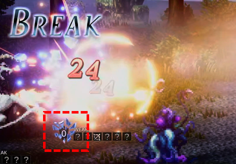 적의 약점을 공략하면 해당 숫자가 하나씩 줄어들고 0으로 만들면 ‘Brake’됩니다.