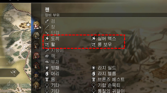 즉, 캐릭터마다 2개의 무기를 사용할 수 있어서 8명의 캐릭터가 다양한 무기를 쓸 수 있다는 의미입니다.