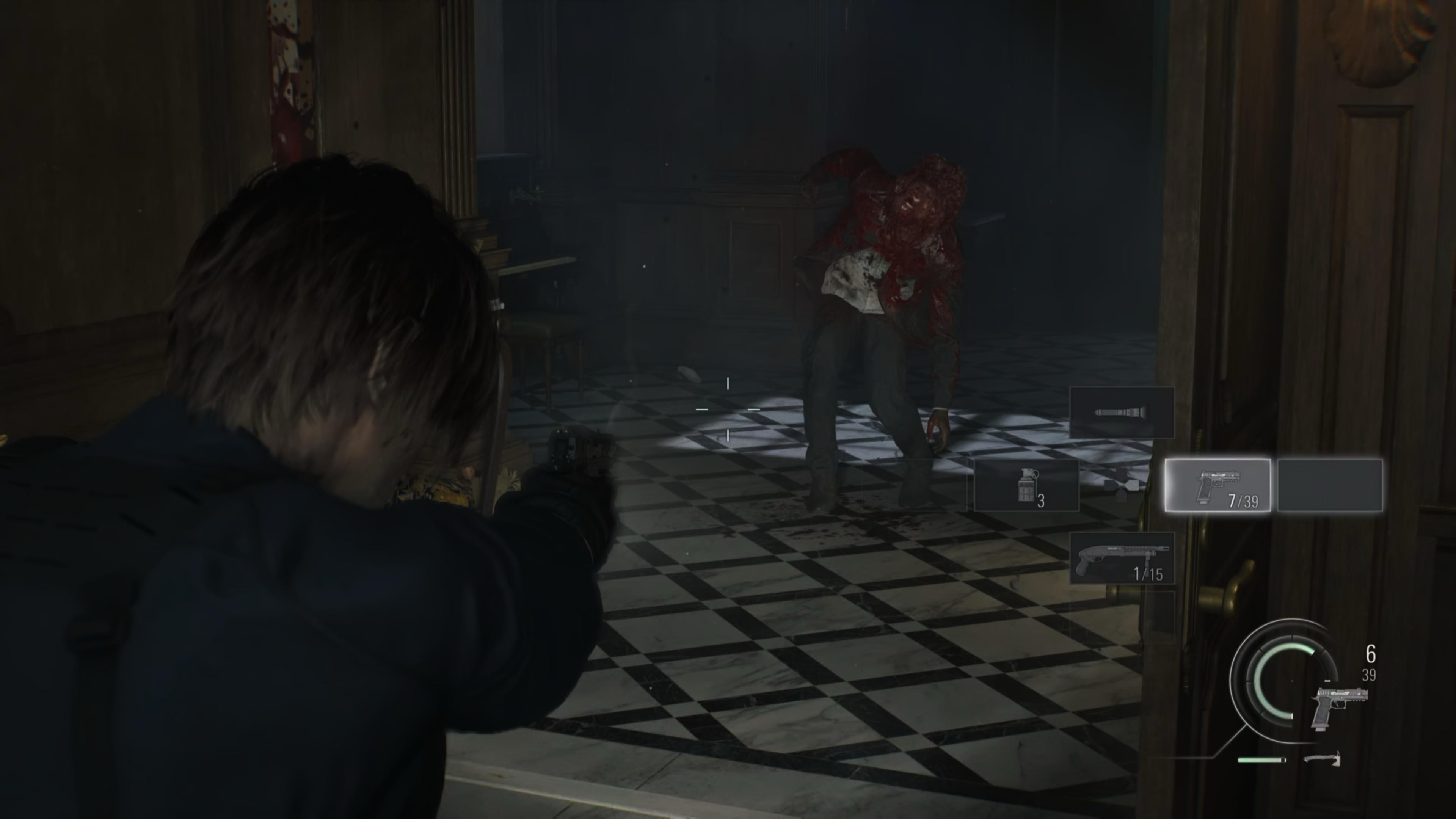 아래층으로 내려가기 전, 레온의 손도끼로 벽장을 부수고 파일 #33과 권총 부품 ‘보정기’를 얻습니다.